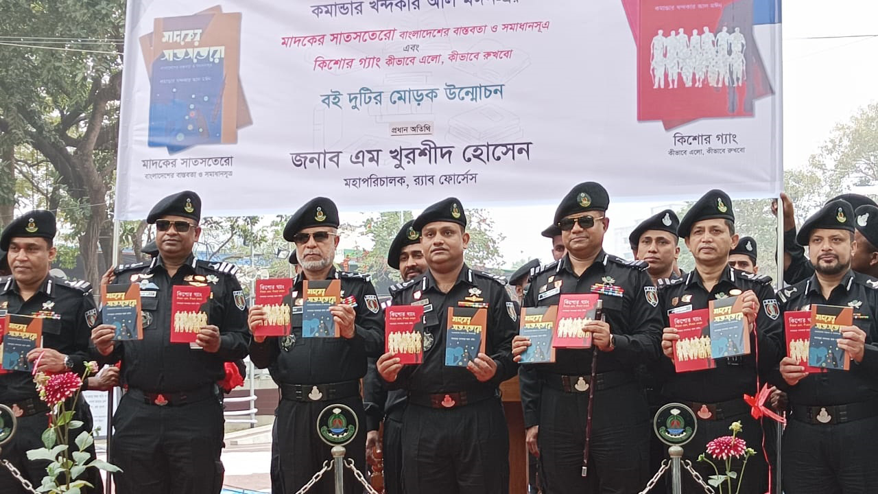এদিন র্যাবের লিগ্যাল অ্যান্ড মিডিয়া উইংয়ের পরিচালক কমান্ডার খন্দকার আল মঈনের লেখা ‘মাদকের সাতসতেরো: বাংলাদেশের বাস্তবতা ও সমাধানসূত্র’ এবং 'কিশোর গ্যাং: ‘কীভাবে এলো, কীভাবে রুখব’ শীর্ষক দুটি বইয়ের মোড়ক উন্মোচন করেন র্যাব ডিজি।