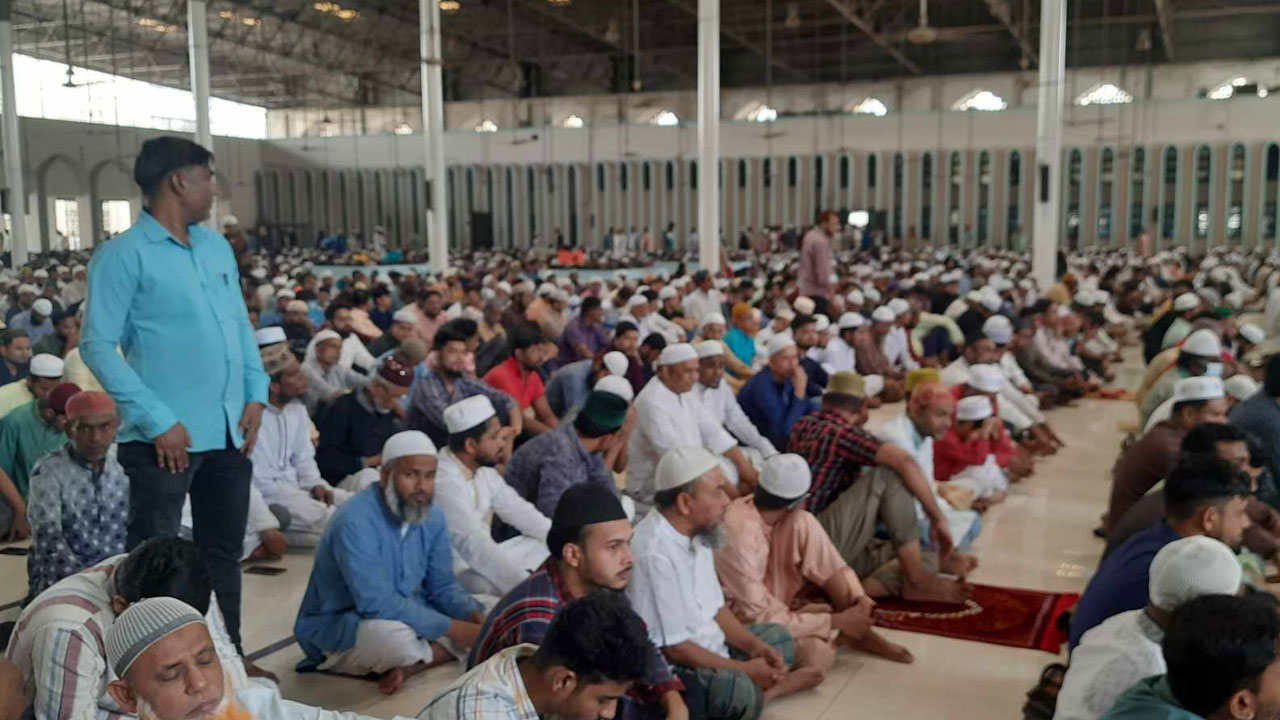 আজ শুক্রবার বেলা ১১টা থেকেই বায়তুল মোকাররমে মুসল্লিদের প্রবেশ করতে দেখা যায়। আজানের সময় যতই এগিয়ে আসছিল, মুসল্লিদের ভিড়ও তত বাড়ছিল। অনেকেই রোদ উপেক্ষা করেই দূরদূরান্ত থেকে ছুটে এসেছেন রমজানের তৃতীয় জুমার নামাজ আদায় করতে।