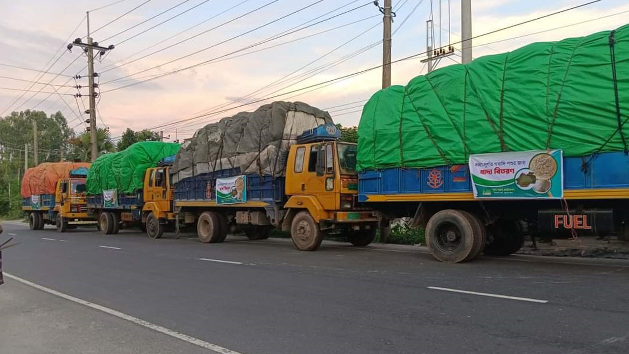একই সাথে ৪টি লরিতে বন্যা দুর্গত এলাকায় পাঠানো হচ্ছে ৭ হাজার ৬০০ প্যাকেট শুকনা খাবার। প্রত্যেক প্যাকেটে রয়েছে ২ কেজি খেজুর, ২ কেজি চিড়া, ১ কেজি লবণ, ১ কেজি চিনি, ও বোতলজাত পানি। এছাড়া ত্রাণ সামগ্রীতে রয়েছে মোমবাতি, দিয়াশলাই ও স্যানিটারি ন্যাপকিন।