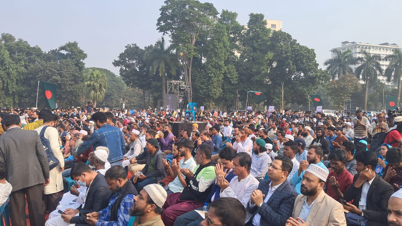 গণজমায়েতে বিএনপির স্থায়ী কমিটির সদস্য ড. মঈন খান, যুগ্মমহাসচিব শহীদ উদ্দিন চৌধুরী এ্যানী, জাতীয় নাগরিক কমিটির মুখ্য সংগঠক সারজিস আলম, বৈষম্যবিরোধী ছাত্র আন্দোলনের সমন্বয়ক হাসনাত আব্দুল্লাহ, জামায়াত ইসলামীর ঢাকা মহানগর উত্তরের সেক্রেটারি শফিকুল ইসলাম, হেফাজতে ইসলাম বাংলাদেশের সাধারণ সম্পাদক আজিজুল হক ইসলামাবাদী, জাতীয় নাগরিক কমিটির আহ্বায়ক নাসীরুদ্দীন পাটওয়ারী, মুখপাত্র সামান্তা শারমিন, সদস্য সচিব আক্তার হোসেন, আমার বাংলাদেশ পার্টির সাধারণ সম্পাদক মজিবুর রহমান মঞ্জু প্রমুখ উপস্থিত হয়েছেন।