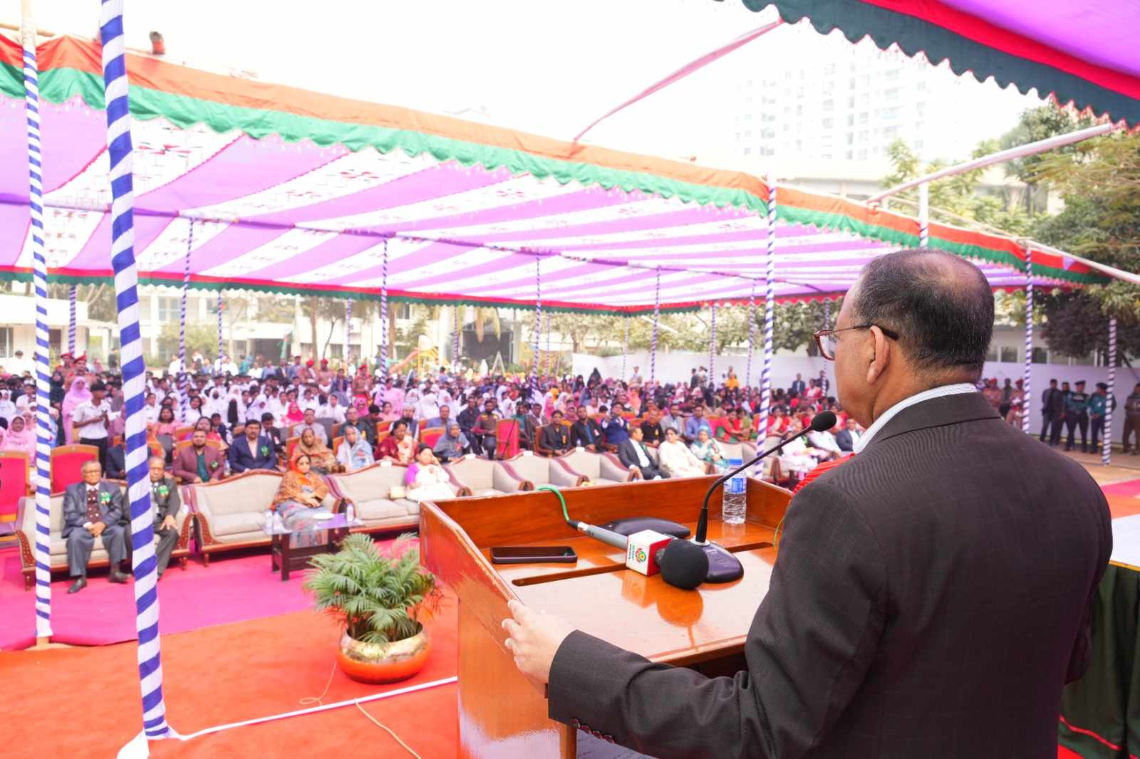 তিনি আরও বলেন, গত জুলাই-আগস্টের আন্দোলনে অনেক ছাত্র-ছাত্রী হতাহত হয়েছে, এটা খুবই দুঃখজনক। আমি আন্দোলনে শহীদদের মাগফিরাত কামনা করছি ও আহতদের দ্রুত সুস্থতা কামনা করছি। শহীদদের স্বপ্নকে বাস্তবায়ন করতে হলে আমাদের ছাত্রছাত্রীদের পড়াশোনায় মনোযোগ দিতে হবে। দেশকে গঠন করতে পড়াশোনা করে নিজেদের সুনাগরিক হিসেবে গড়ে তোলার কোনো বিকল্প নেই।