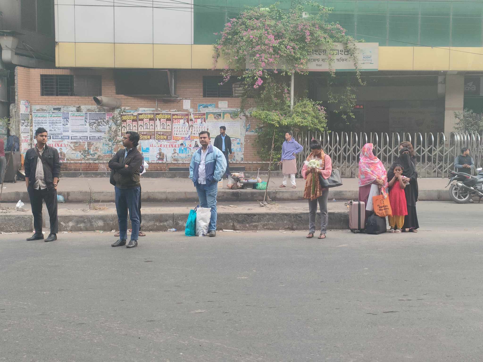 একটি বেসরকারি প্রতিষ্ঠানে চাকরি করেন আরেফিন হক। তিনি বলেন, সকাল সাড়ে আটটায় অফিস, ইতোমধ্যে ৮টা বেজে গেছে, অথচ কোনো বাস নেই। কিভাবে অফিসে যাবো বুঝতে পারছি না।
