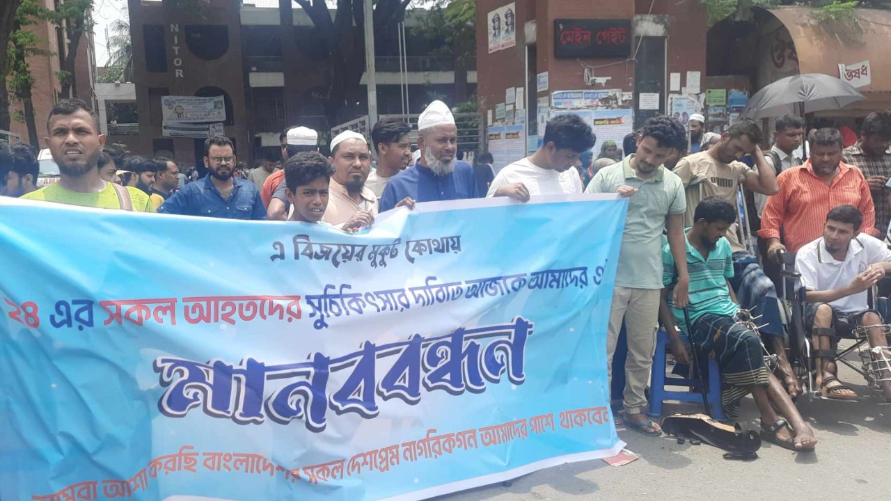 সুচিকিৎসার দাবিতে জুলাই অভ্যুত্থানে আহতদের মানববন্ধন