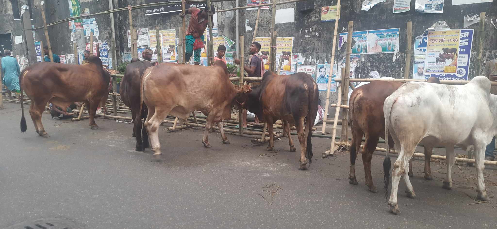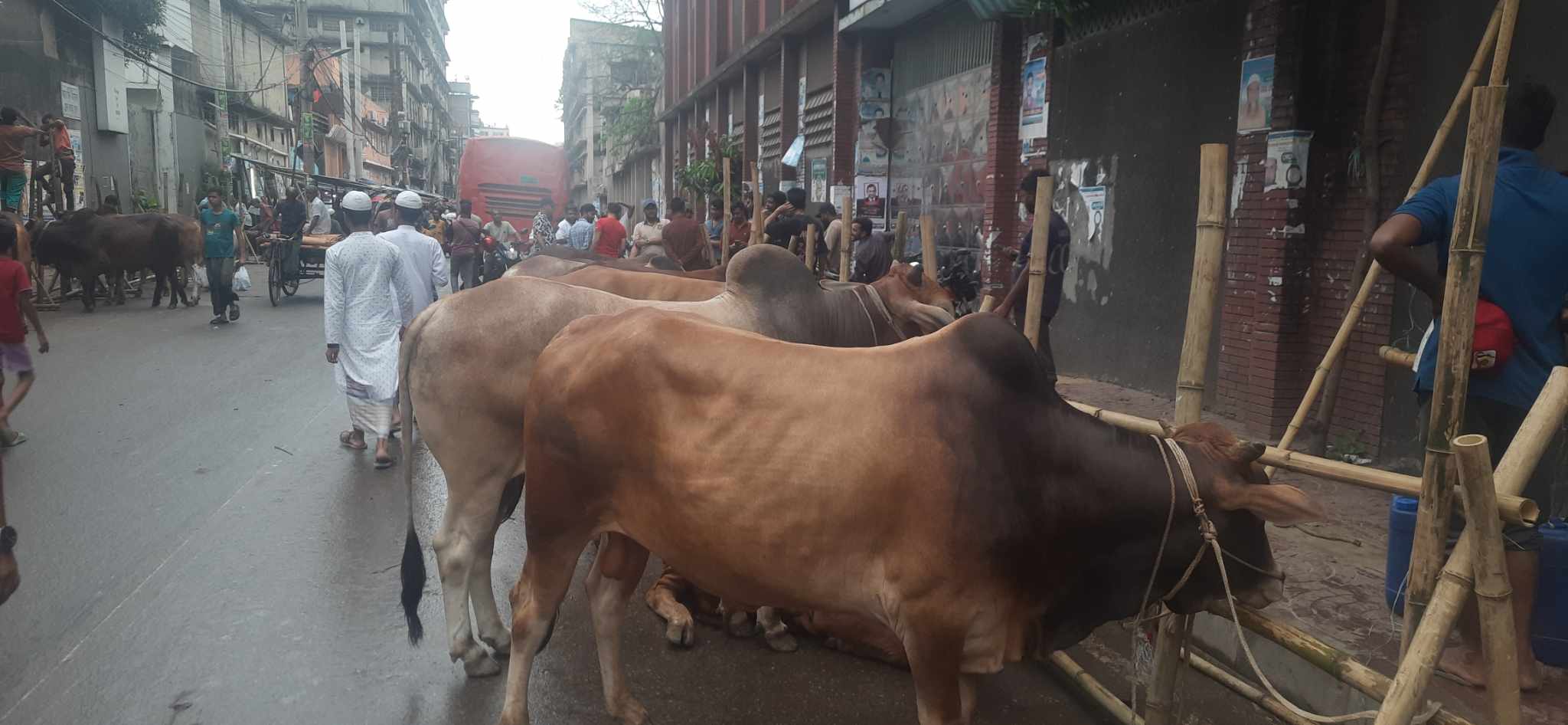 আরও দেখা যায়, ঢাকা দক্ষিণ সিটি করপোরেশনের অধীন হাজারীবাগ অস্থায়ী হাটের প্রস্তুতিও শেষ পর্যায়ে। যেসব বিক্রেতা গরু এসেছেন, তারা গরু রাখার জন্য উপরে ছাউনি দিচ্ছেন। বাঁশ দিয়ে ছাউনি তৈরি করে অস্থায়ীভাবে ত্রিপল দিয়ে ঝড়-বৃষ্টি আটকানোর চেষ্টা করছেন। তবে ইজারাদারদের পক্ষ থেকে সড়কের পাশে সারিবদ্ধ বাঁশ দিয়ে গরু বাঁধার ব্যবস্থা সম্পন্ন করা হয়েছে।