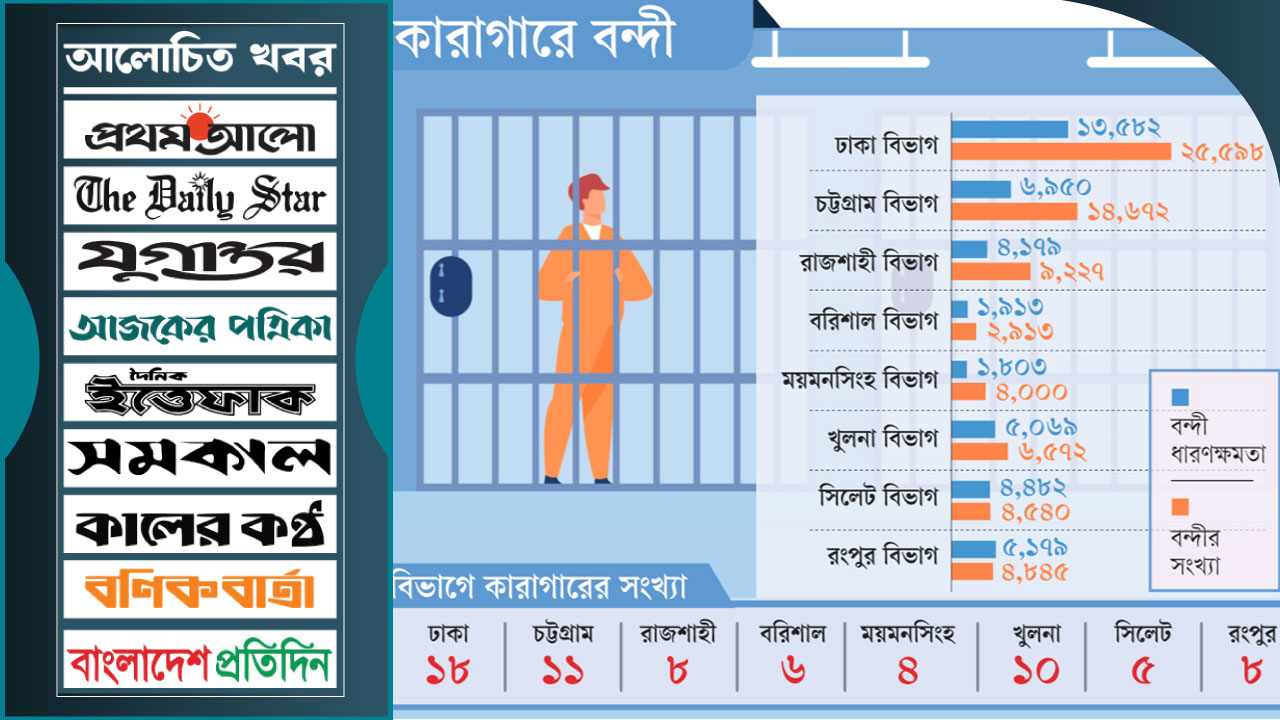 কারাগারে বন্দীর চাপ ধারণক্ষমতার দ্বিগুণ