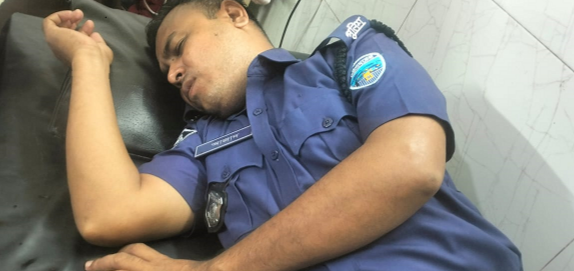 অল্প কিছুক্ষণ পর বিক্রয় প্রতিনিধি আবার এসে অকথ্য ভাষায় গালাগাল করে মোবাইল ফোনে ভিডিও ধারণ শুরু করেন। তখন বাধা দিলে তিনি স্টিলের টুল দিয়ে আজাদ উদ্দিনের মাথায় আঘাত করেন। এতে তার মাথা ফেটে যায়। পরে সহকর্মীরা তাকে উদ্ধার করে হাসপাতালে নিয়ে যান।