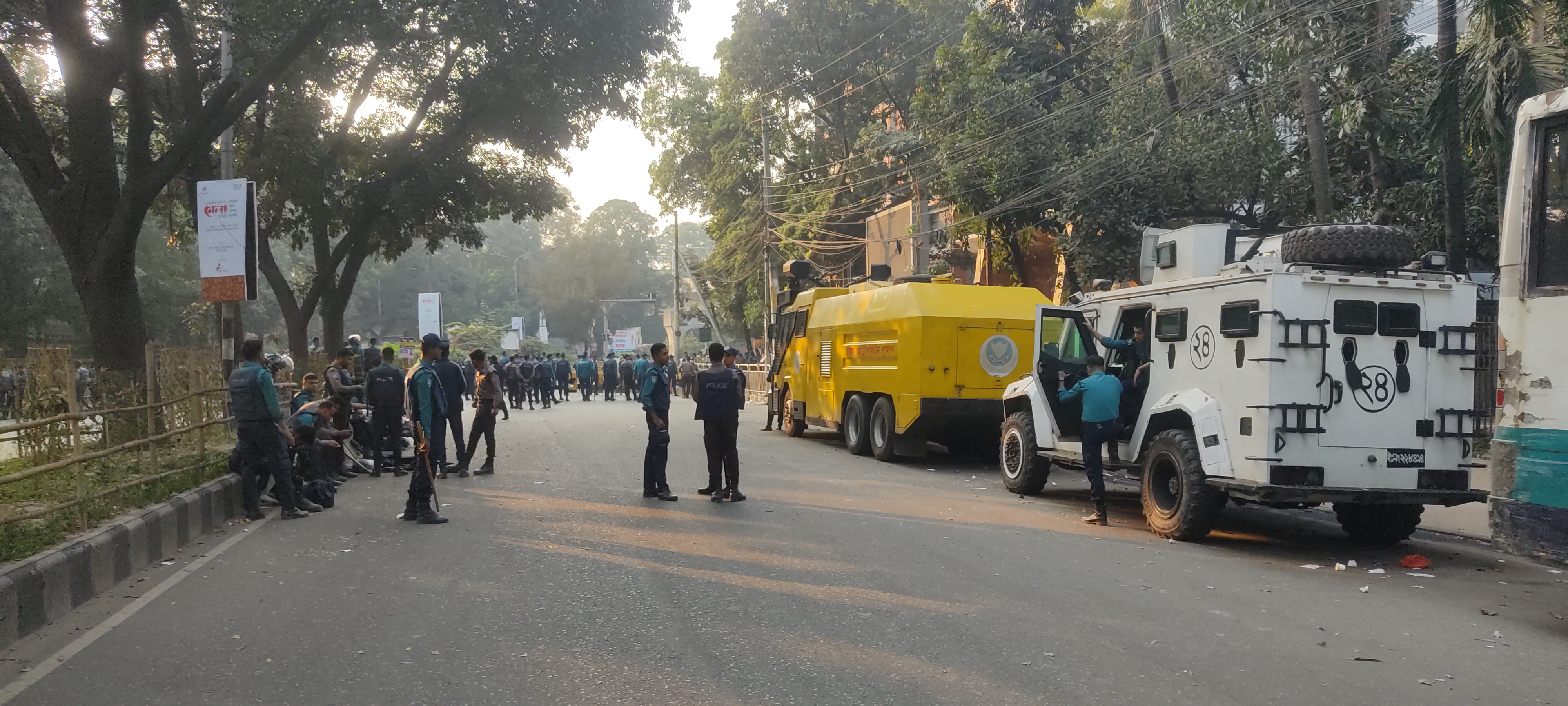 এর আগে, আজ দুপুর ১টায় রাজধানীর সরকারি সাত কলেজ নিয়ে প্রস্তাবিত ঢাকা কেন্দ্রীয় বিশ্ববিদ্যালয়ের অধ্যাদেশ ঘোষণার ১ দফা দাবিতে শিক্ষা ভবন মোড় অবরোধ করেন শিক্ষার্থীরা৷ এতে পুরো এলাকাজুড়ে তৈরি হয়েছে তীব্র যানজট। আর অবরোধ ঘিরে অনভিপ্রেত ঘটনা এড়াতে শিক্ষাভবনের সামনে মোতায়েন করা হয়েছে বিপুল সংখ্যক পুলিশ। রাখা হয়েছে জলকামান ও রায়টকারও।