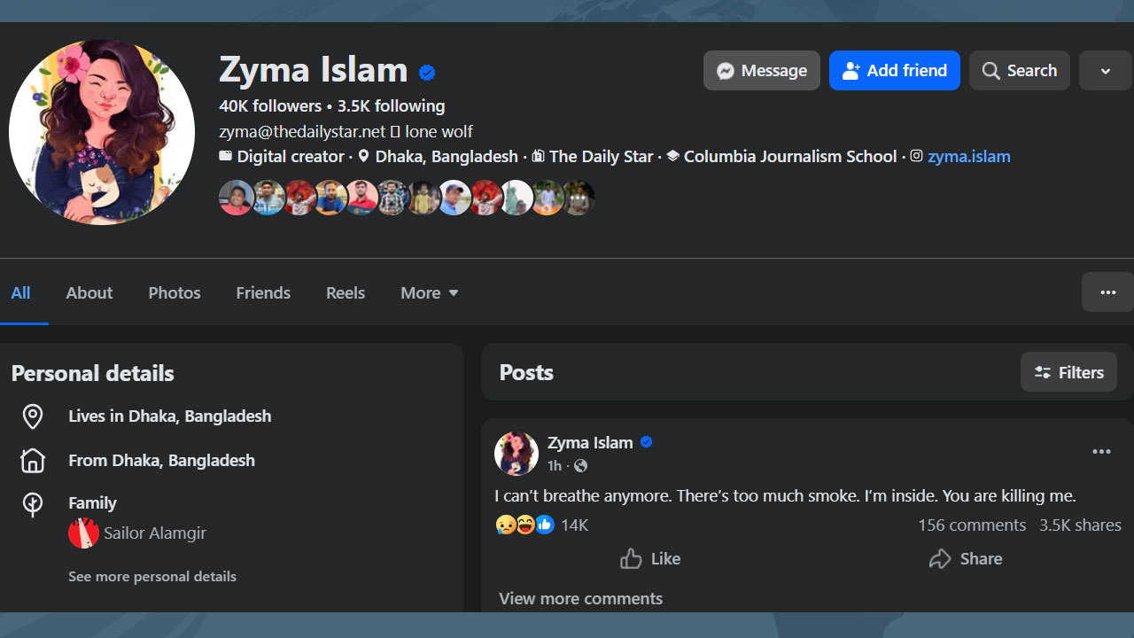 ডেইলি স্টারের আহমেদ দিপ্ত ফেসবুকে একটি ভিডিও আপলোড দেন। ক্যাপশনে তিনি লেখেন, ‘এমন লেট নাইট ডিউটি যেন কারও জীবনে না আসুক। ছাদে আটকা পড়ছি, মাফ কইরা দিয়েন। ভবনে আগুন দিছে, দেখা নাও হতে পারে।’