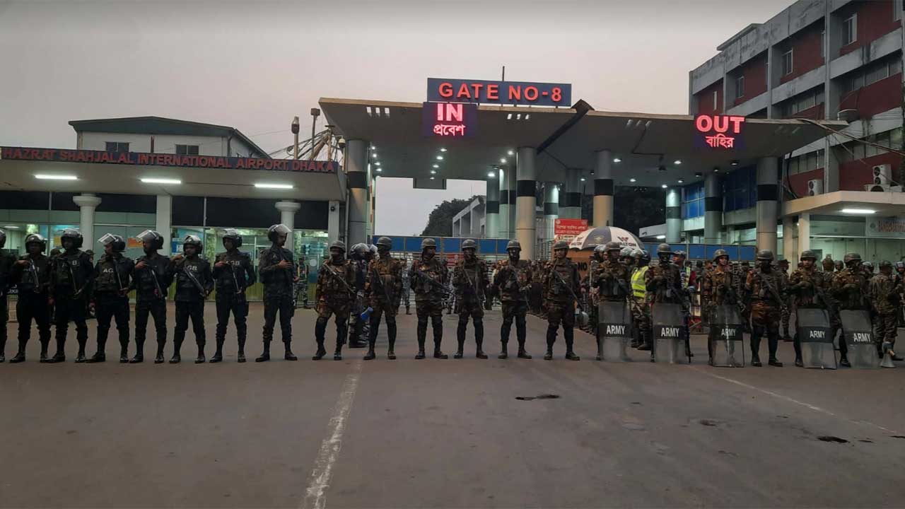 শুক্রবার (১৯ ডিসেম্বর) বিকেল পাঁচটায় হযরত শাহজালাল আন্তর্জাতিক বিমানবন্দর ঘুরে দেখা যায়, প্রধান সড়ক থেকে ডোমেস্টিক ও আন্তর্জাতিক টার্মিনালের প্রতিটি প্রবেশ মুখে সেনাবাহিনীর সদস্যরা দায়িত্ব পালন করছেন। এছাড়া পুরো বিমানবন্দর এলাকার প্রতিটি রাস্তায় তাদের দায়িত্ব পালন করতে দেখা গেছে। এছাড়া ভিআইপি গেটে বাংলাদেশ বিমান বাহিনী ও আর্মড ফোর্স ব্যাটালিয়নের সদস্যদের কঠোর দায়িত্ব পালন করতে দেখা গেছে।