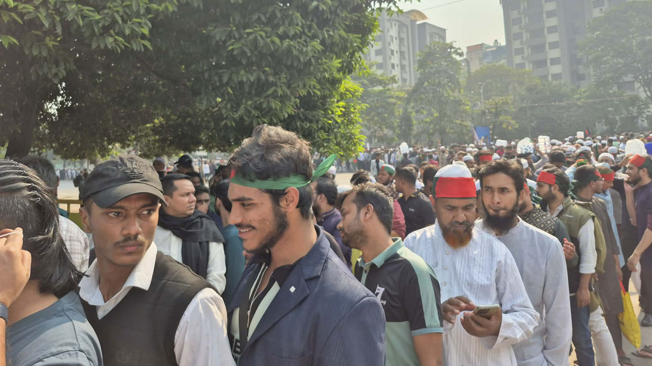 ইনকিলাব মঞ্চের মুখপাত্র শরিফ ওসমান হাদির নামাজে জানাজায় অংশগ্রহণের লক্ষ্যে সংসদ ভবনের দক্ষিণ প্লাজায় প্রবেশ করতে সারিবদ্ধ হয়ে অপেক্ষা করছে হাজারো ছাত্র-জনতা। নামাজে জানাজা শুরুর তিন ঘণ্টা আগেই দীর্ঘ সারিবদ্ধ হতে দেখা গেছে উৎসুক ছাত্র-জনতাকে।