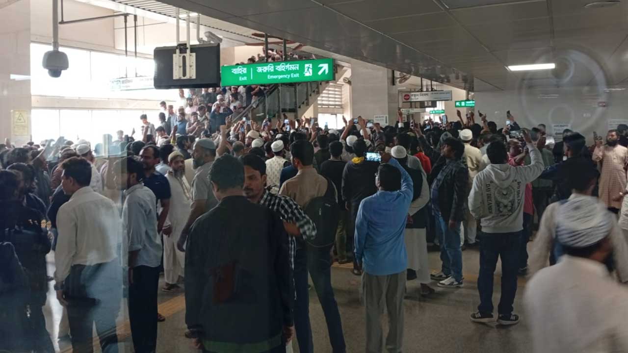 দেখা গেছে, ট্রেন ভর্তি মানুষ, স্টেশনে স্টেশনে মানুষের ভিড়। প্লাটফর্ম, কনকোর্স প্লাজা ও স্টেশনের নিচে সব জায়গায় সাধারণ মানুষ স্লোগান দিচ্ছেন। ট্রেনে ওঠার অপেক্ষায় লম্বা লাইন ধরে দাঁড়িয়ে আছেন তারা।