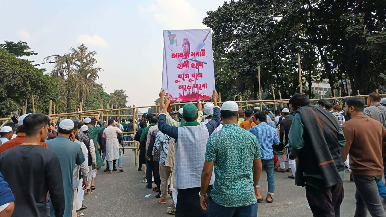তিনি বলেন, ৭-৮ দিন হয়ে গেল, আমরা শহীদ ওসমান হাদির বিষয়ে কিছু করতে পারলাম নাই। এই দুঃখে কলিজা ছিঁড়ে যাচ্ছে। আমরা ওসমান হাদির জন্য দোয়া করি। আমরা তার স্ত্রী ও সন্তানের জন্য দোয়া করি। ওর সন্তানের বয়স মাত্র ৮ মাস।