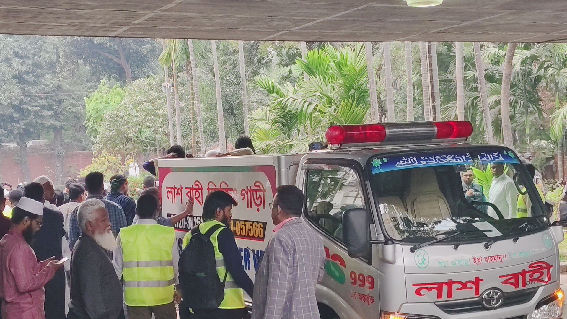 শনিবার (২০ ডিসেম্বর) বিকেল ৩টার দিকে মরদেহ বহনকারী অ্যাম্বুলেন্সটি ঢাকা বিশ্ববিদ্যালয়ের কেন্দ্রীয় জামে মসজিদের পাশের কবরস্থানে এসে পৌঁছায়।