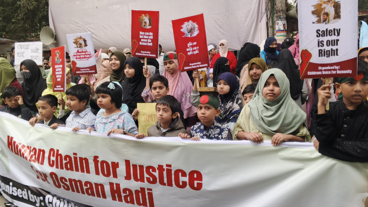 ইনকিলাব মঞ্চের মুখপাত্র ও জুলাই আন্দোলনের যোদ্ধা শহীদ শরিফ ওসমান হাদির হত্যাকারীদের গ্রেপ্তার ও দ্রুত বিচার, জুলাই যোদ্ধাদের নিরাপত্তা এবং সকল নাগরিকের পূর্ণাঙ্গ নিরাপত্তা নিশ্চিতের তিন দফা দাবি জানিয়েছে চিলড্রেন ভয়েস অব হিউম্যানিটি।