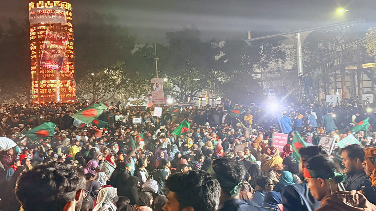 এর আগে, শনিবার সন্ধ্যায় শহীদ ওসমান হাদির হত্যার বিচারের দাবিতে রাজধানীর শাহবাগ মোড় অবরোধের দ্বিতীয় দিনে জনসমুদ্রে পরিণত হয় শাহবাগ। সন্ধ্যায় সরেজমিনে দেখা যায়, ইনকিলাব মঞ্চের নেতাকর্মী, শিক্ষার্থী ও সাধারণ জনতা শাহবাগ মোড়ে অবস্থিত শহীদ হাদি চত্বরে অবস্থান নিয়েছে।