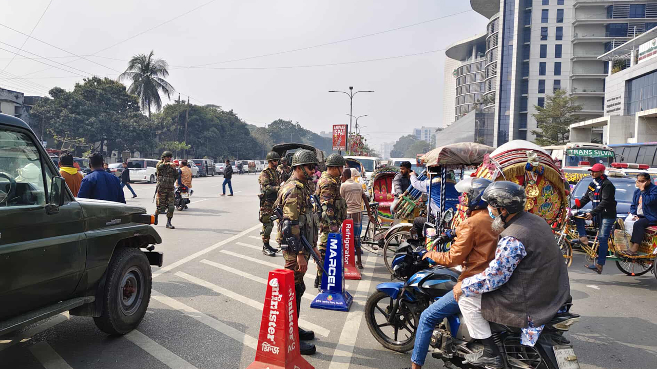 পথে পথে পুলিশ সেনা-বিজিবি মোতায়েন, আগারগাঁও থেকে যান চলাচল বন্ধ