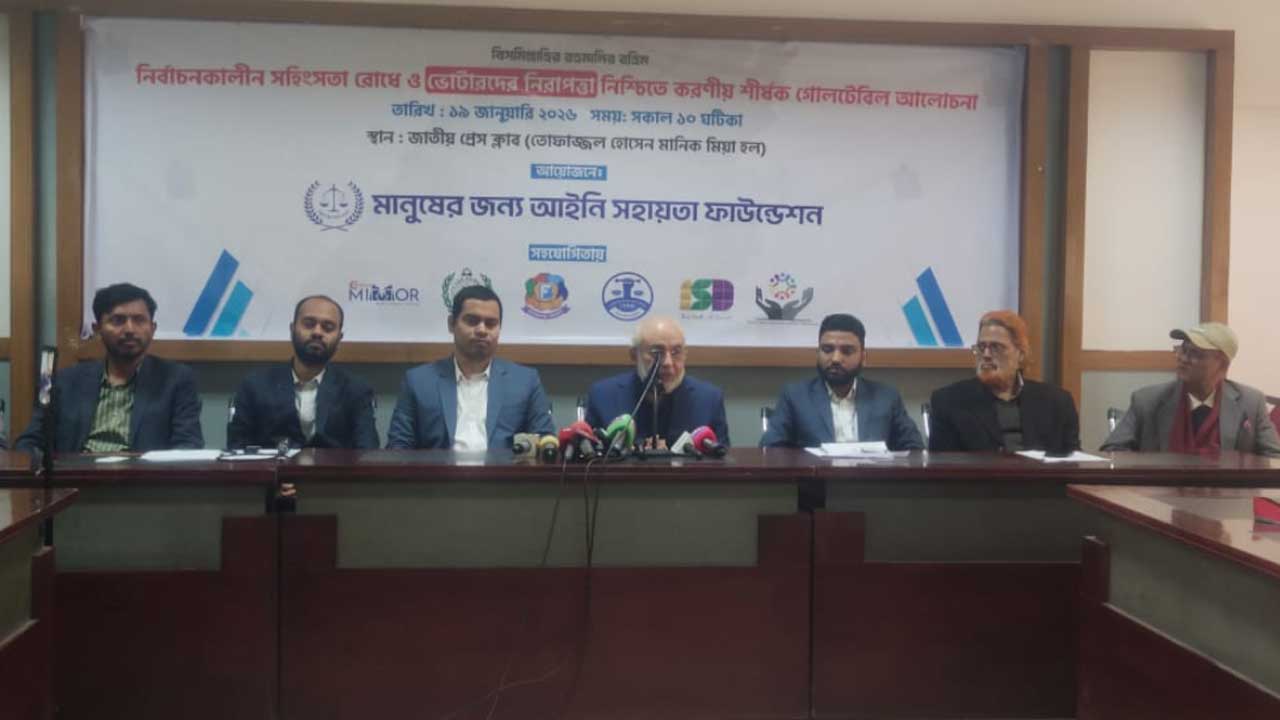 নির্বাচনকালীন সহিংসতা রোধ এবং ভোটারদের নিরাপত্তা নিশ্চিতসহ নির্বাচনকে অবাধ, সুষ্ঠু ও সহিংসতামুক্ত করতে রাষ্ট্র, রাজনৈতিক দলগুলোকে আহ্বান জানিয়েছে মানুষের জন্য আইনি সহায়তা ফাউন্ডেশন।