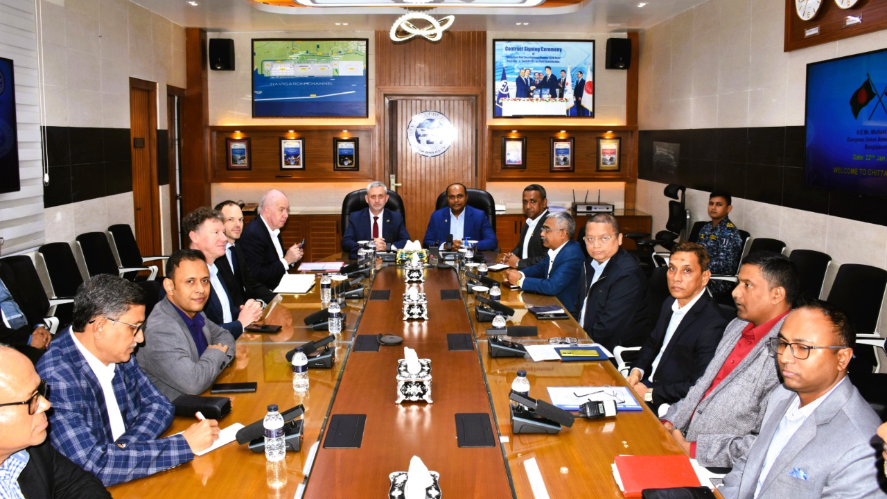 বৃহস্পতিবার (২২ জানুয়ারি) প্রতিনিধি দলটি বন্দর কর্তৃপক্ষের চেয়ারম্যান রিয়ার অ্যাডমিরাল এস এম মনিরুজ্জামানের সঙ্গে সৌজন্য সাক্ষাতে মিলিত হন। এ সময় বন্দর চেয়ারম্যান ইউরোপীয় ইউনিয়নের রাষ্ট্রদূত ও তার প্রতিনিধিদের স্বাগত জানান।