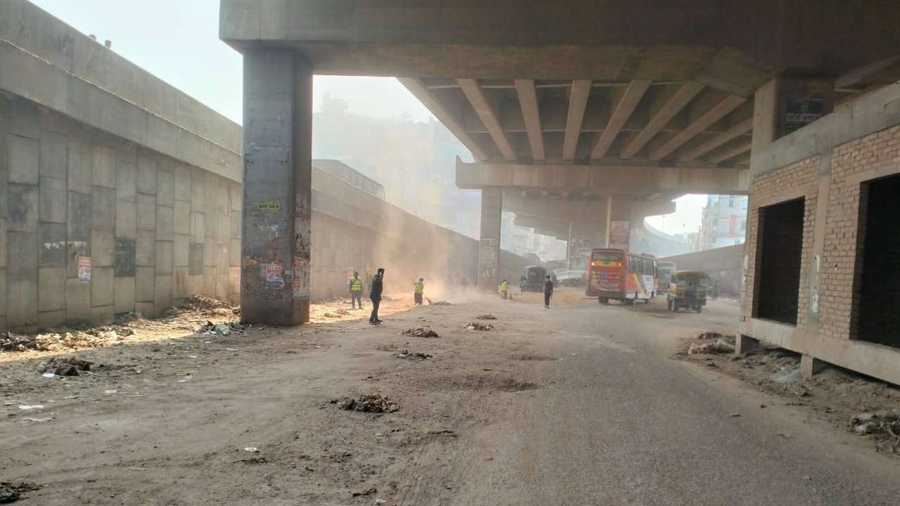 ফ্লাইওভারের নিচের সড়কে পরিচ্ছন্নতা কার্যক্রম পরিচালনা ডিএনসিসির