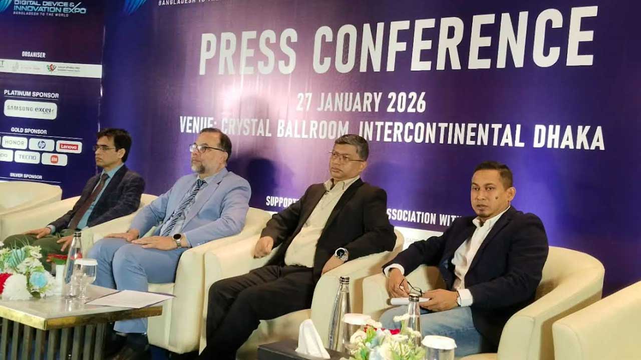 মঙ্গলবার (২৭ জানুয়ারি) রাজধানীর হোটেল ইন্টারকন্টিনেন্টালে দেশের সর্ববৃহৎ তথ্যপ্রযুক্তি প্রদর্শনী ‘ডিজিটাল ডিভাইস অ্যান্ড ইনোভেশন এক্সপো ২০২৬’ উপলক্ষ্যে আয়োজিত এক সংবাদ সম্মেলনে তিনি এ কথা বলেন।