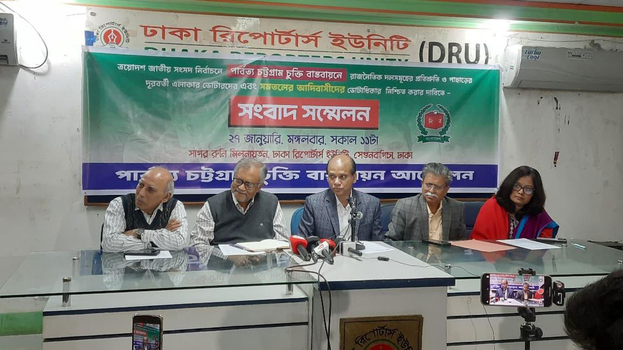 মঙ্গলবার (২৭ জানুয়ারি) ঢাকা রিপোর্টার্স ইউনিটির সাগর রুনি মিলনায়তনে আয়োজিত এক সংবাদ সম্মেলনে এই দাবি জানায় পার্বত্য চট্টগ্রাম চুক্তি বাস্তবায়ন আন্দোলন।