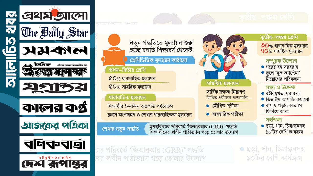 খাতা-কলমের সেই চিরচেনা লড়াই আর পরীক্ষার আগের সেই টানটান উত্তেজনা আবারও ফিরছে প্রাথমিকের আঙিনায়। শিশুদের পড়ার টেবিলে ফেরানো, ডিভাইসের আসক্তি কমিয়ে শিক্ষার গুণগত মান নিশ্চিত করতে প্রথম, দ্বিতীয় ও তৃতীয় শ্রেণিতে ফিরছে পরীক্ষা। আর চতুর্থ ও পঞ্চম শ্রেণিতে বাড়ানো হয়েছে সামষ্টিক মূল্যায়নের (লিখিত) নম্বর। এতে বদলে যাচ্ছে প্রাথমিকের শিক্ষার্থীদের মূল্যায়নের সমীকরণও।