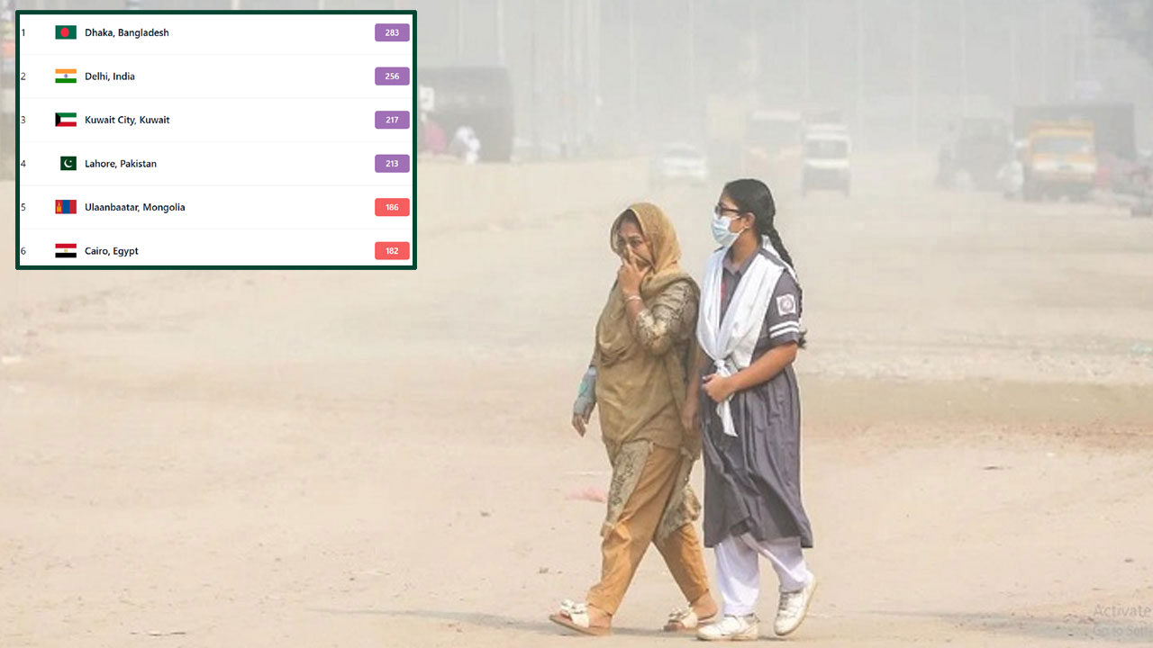 ওয়েবসাইটের তথ্যমতে, বায়ুদূষণে আজ বিশ্বে দ্বিতীয় স্থানে রয়েছে ভারতের দিল্লি, বায়ুর স্কোর ২৫৬। ২১৭ স্কোর নিয়ে তৃতীয় অবস্থানে রয়েছে কুয়েতের কুয়েত সিটি। এছাড়া চতুর্থ অবস্থানে রয়েছে পাকিস্তানের লাহোর, যার স্কোর ২১৩।