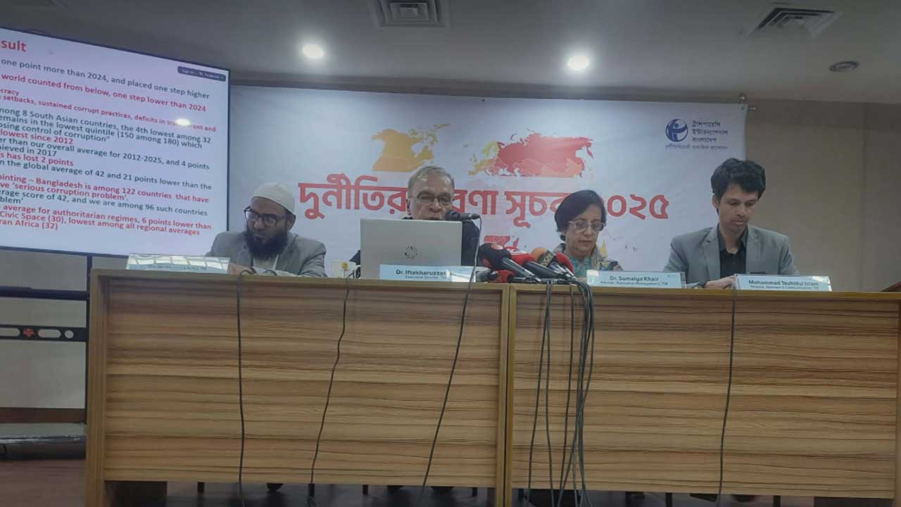 তিনি বলেন, সিপিআই ২০২৫ অনুযায়ী বাংলাদেশের স্কোর ২৪। এ বছর স্কোর গত বছরের তুলনায় বেশি হলেও চৌদ্দ বছরের মধ্যে দ্বিতীয় সর্বনিম্ন। দক্ষিণ এশিয়ায় আফগানিস্তান ১৬ পয়েন্ট নিয়ে সর্বনিম্ন স্কোর ও অবস্থানে রয়েছে। এ অঞ্চলে আফগানিস্তানের পরই বাংলাদেশের স্কোর ও অবস্থান দ্বিতীয় সর্বনিম্ন।