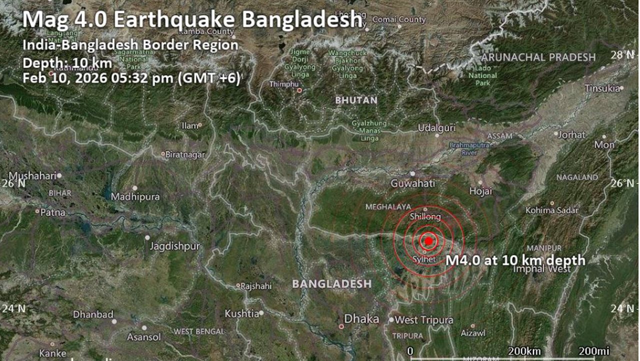 সিলেটের সীমান্তবর্তী এলাকায় ভূমিকম্প অনুভূত হয়েছে। মঙ্গলবার (১০ ফেব্রুয়ারি) বিকেল ৫টা ৩২ মিনিটে এই কম্পন অনুভূত হয়। রিখটার স্কেলে এর মাত্রা ছিল ৪.০।