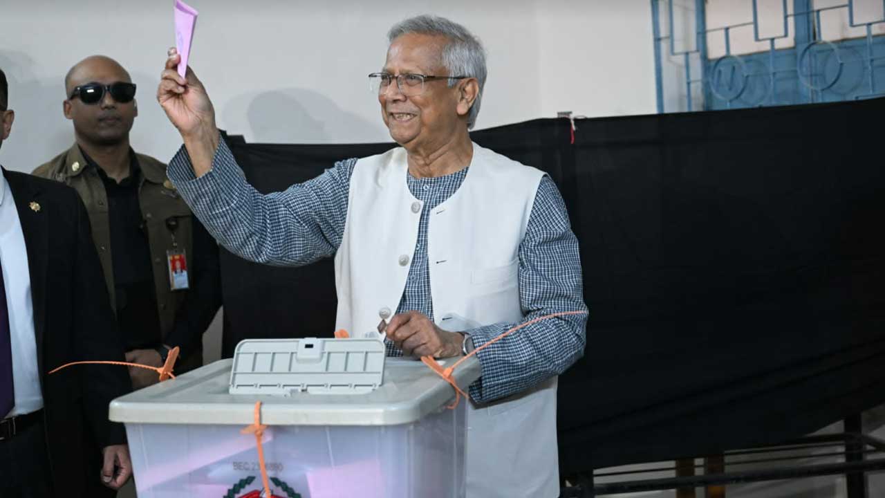 ত্রয়োদশ জাতীয় সংসদ নির্বাচন ও গণভোটে ভোট দিয়েছেন প্রধান উপদেষ্টা ড. মুহাম্মদ ইউনূস। ভোট দেওয়ার পর তিনি বলেন, আজ আমার জীবনে মহা আনন্দের দিন। আজ থেকে আমরা নতুন বাংলাদেশ সৃষ্টির সুযোগ পেলাম। এর মাধ্যমে আমরা দুঃস্বপ্নময় অতীতকে সম্পূর্ণরূপে বর্জন করলাম।
