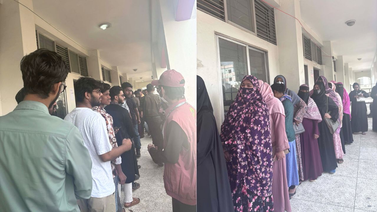 ত্রয়োদশ জাতীয় সংসদ নির্বাচন ও গণভোটে রাজধানীর ঢাকা-৫ আসনের বিভিন্ন কেন্দ্রে সকাল থেকে শান্তিপূর্ণভাবে ভোটগ্রহণ চলছে। তবে অনেক কেন্দ্রে ভোটগ্রহণের গতি নিয়ে অসন্তোষ প্রকাশ করেছেন ভোটাররা।
