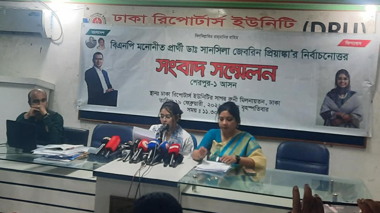 সদ্য অনুষ্ঠিত ত্রয়োদশ জাতীয় সংসদ নির্বাচনে শেরপুর সদর-১ আসনের ফলাফল স্থগিত করে পুনঃনির্বাচনের দাবি জানিয়েছেন বিএনপি মনোনীত ধানের শীষের প্রার্থী ডা. সানসিলা জেবরিন প্রিয়াঙ্কা।