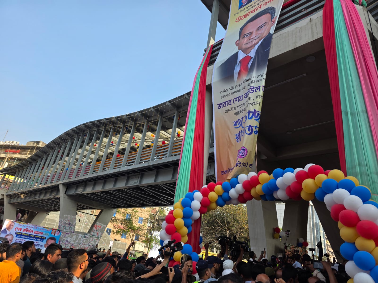 শনিবার (২৮ ফেব্রুয়ারি) মিরপুর রোড করিডোরের নিউমার্কেট এলাকায় ডিএসসিসির নিজস্ব অর্থায়নে নির্মিত আধুনিক ফুটওভার ব্রিজের আনুষ্ঠানিক উদ্বোধনকালে তারা যৌথভাবে এই ঘোষণা দেন।