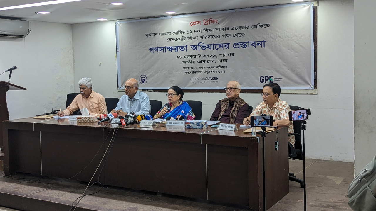 শনিবার (২৮ ফেব্রুয়ারি) জাতীয় প্রেসক্লাবে গণস্বাক্ষরতা অভিযান কর্তৃক আয়োজিত এক সংবাদ সম্মেলনে বক্তারা এসব কথা বলেন।
