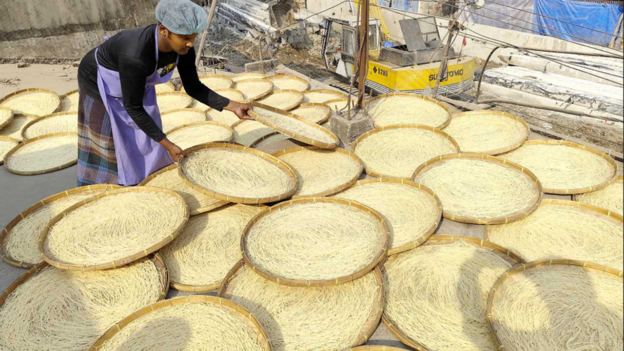 এরপর রোদে শুকানো— এই ধাপটি নাকি মানের জন্য সবচেয়ে গুরুত্বপূর্ণ। রোদে ভালোভাবে শুকিয়ে নেওয়ার পর দেওয়া হয় বড় চুল্লিতে। কিছুক্ষণের মধ্যেই সেমাইয়ের চাক লালচে রং ধারণ করে। উল্টে-পাল্টে নামিয়ে ফেললেই বিক্রির জন্য প্রস্তুত হয়ে যায়।