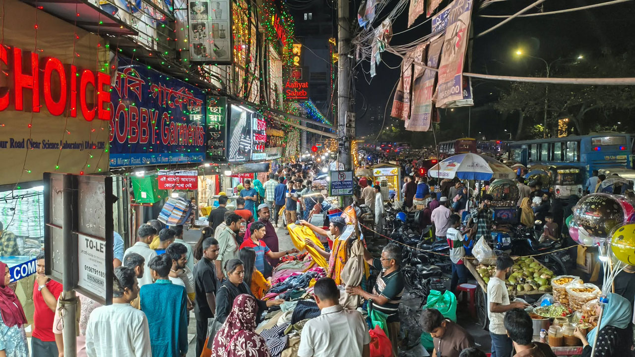আরও দেখা গেছে, ঈদের কেনাকাটাকে কেন্দ্র করে ইতোমধ্যে জমে উঠেছে রাজধানীর অন্যতম ব্যস্ত এই পোশাক বিপণিবিতান এলাকা। বিভিন্ন শপিংমল, মার্কেট ও ফুটপাতের দোকানগুলোতে ক্রেতাদের উপস্থিতি চোখে পড়ার মতো। বিশেষ করে পোশাক, জুতা, প্রসাধনী ও শিশুদের সামগ্রীর দোকানগুলোতে বেশি ভিড় লক্ষ্য করা গেছে। রঙিন বাতিতে সাজানো হয়েছে এসব শপিংমল ও বিপণি বিতানগুলো।