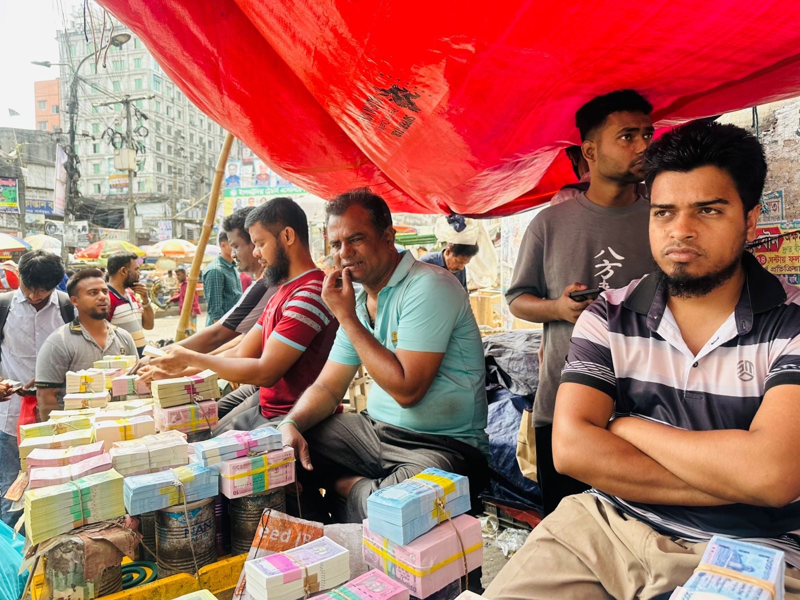 বুধবার (১৮ মার্চ) রাজধানীর গুলিস্তান স্পোর্টস মার্কেট-সংলগ্ন ফুটপাত ঘুরে দেখা গেছে, সারি সারি অস্থায়ী দোকানে সাজানো রয়েছে বিভিন্ন মূল্যমানের নতুন নোটের বান্ডেল।