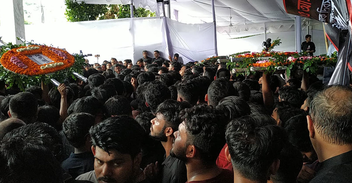 ফুল দিয়ে শ্রদ্ধা জানাতে গিয়ে শুরু হয় ধাক্কাধাক্কি। ছাত্রলীগ নেতাদের ধাক্কাধাক্কির কারণে তাদের পেছনের সারিতে থাকা অন্য সংগঠনের ব্যানারে আসা মানুষজন পড়েন বিপাকে। ধাক্কাধাক্কিতে কয়েকজন ছিটকে প্যান্ডেলের বাইরে পড়ে যান।