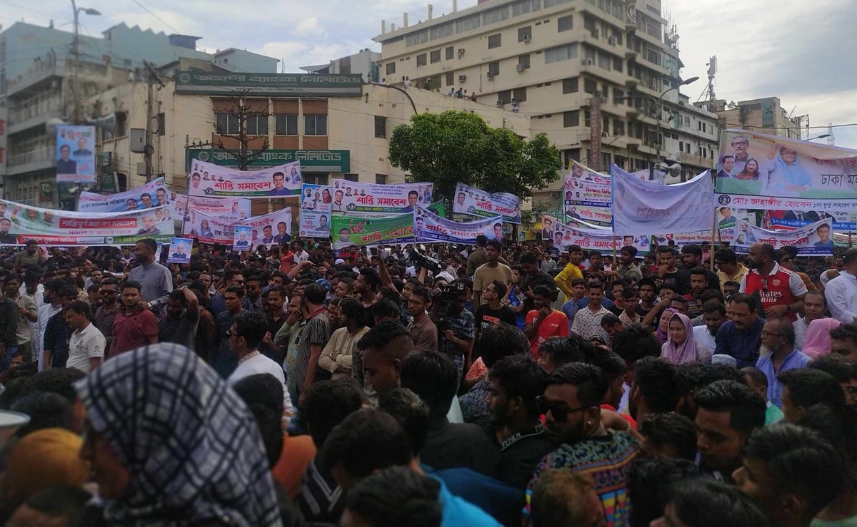 বুধবার (১২জুলাই) বিকেলে বায়তুল মোকাররম মসজিদের দক্ষিণ গেটের সামনে এ সমাবেশ শুরু হয়।