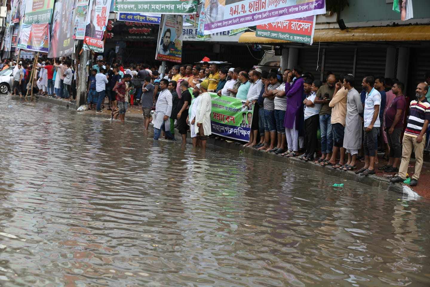 এদিকে সরেজমিনে দেখা গেছে, নয়াপল্টনে বিএনপির কেন্দ্রীয় কার্যালয়ের সামনে সড়কটি বৃষ্টির পানিতে তলিয়ে গেছে। নেতাকর্মীরা হাঁটু পানিতে দাড়িয়ে স্লোগান দিতে থাকেন। বৃষ্টিতে ভিজে সমাবেশ স্থলে অবস্থান করেন নেতাকর্মীরা। দুপুর আড়াইটার দিকে এ সমাবেশ অনুষ্ঠিত হওয়ার কথা থাকলেও তা শুরু হয় সাড়ে তিনটার দিকে।