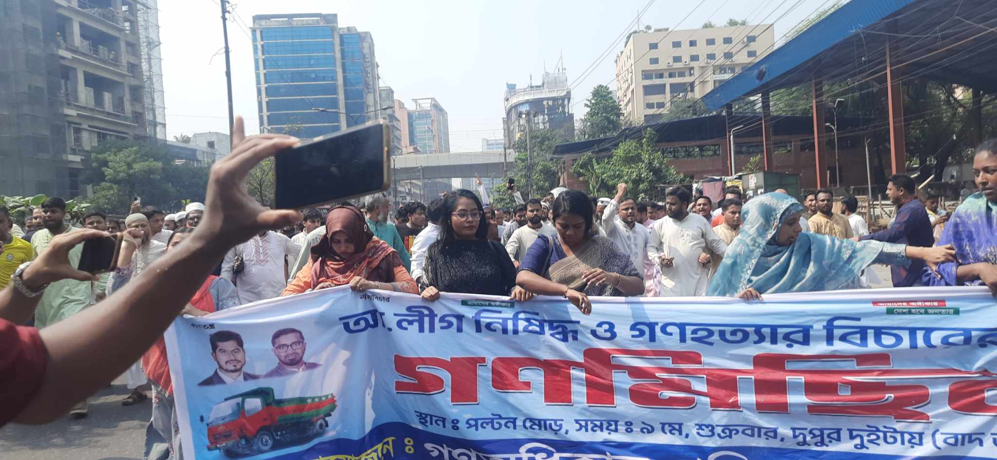 শুক্রবার (৯ মে) জুমার নামাজের পর পুরানো পল্টনের দলীয় কার্যালয় থেকে মিছিল বের করে দলটি। এতে নেতৃত্ব দেন দলটির সভাপতি নুরুল হক নুর।