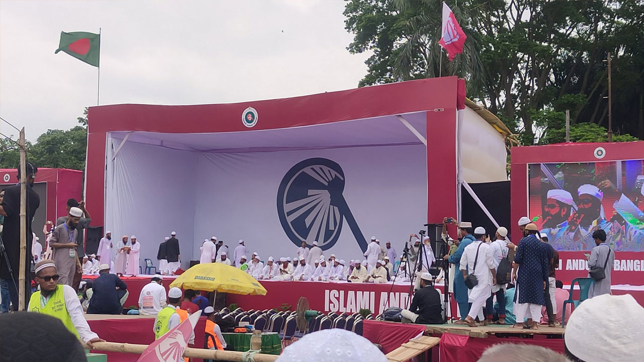 মঞ্চ থেকে আসছে জ্বালাময়ী বক্তব্য, ফাঁকে ফাঁকে ইসলামি গান