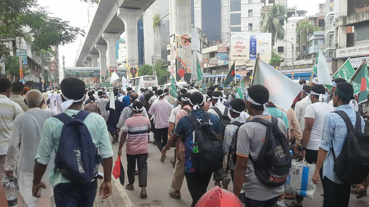 বাংলাদেশ জামায়াতে ইসলামীর জাতীয় সমাবেশে যোগ দিতে দেশের বিভিন্ন প্রান্ত থেকে আসা কর্মী-সমর্থকরা সোহরাওয়ার্দী উদ্যানে ‘দাঁড়িপাল্লা’ স্লোগানে প্রবেশ করছেন। উদ্যানের চারদিক দিয়ে হাজারো নেতাকর্মীকে মিছিল নিয়ে প্রবেশ করতে দেখা যায়।
