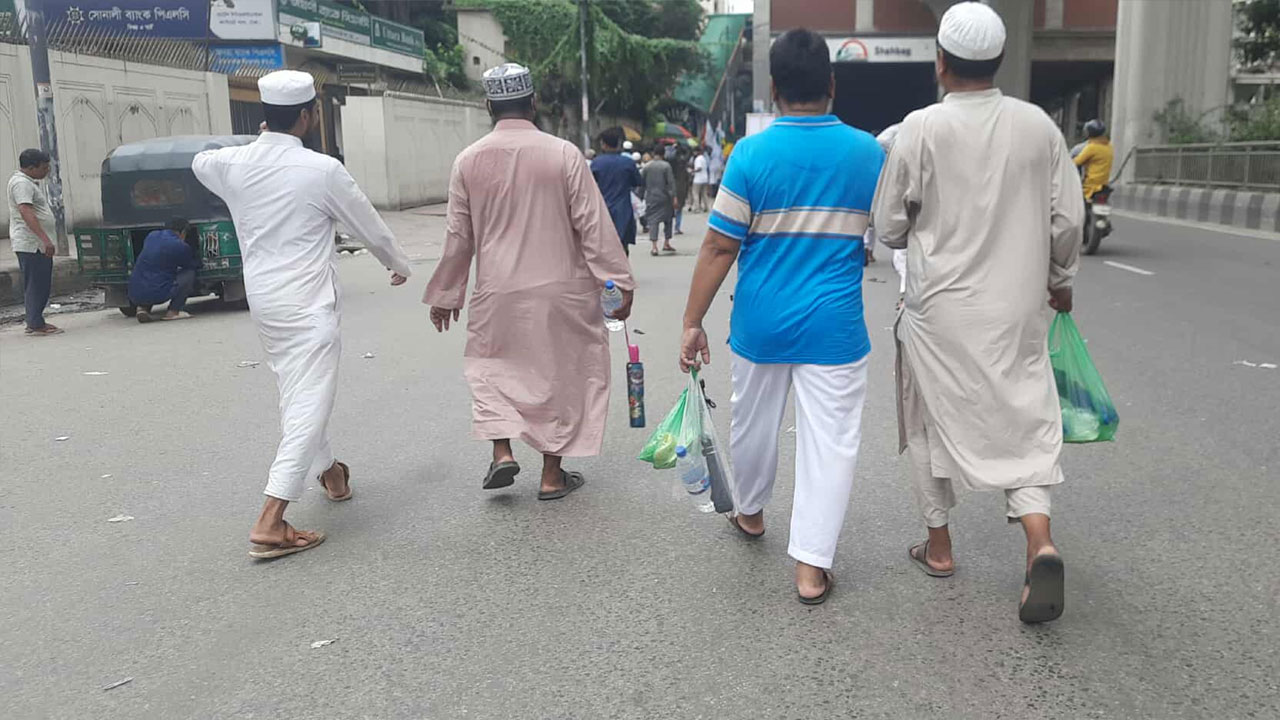 জামায়াতে ইসলামীর জাতীয় সমাবেশে যোগ দিতে আসা প্রতিটি নেতাকর্মী দুপুরের খাবার সঙ্গে করে নিয়ে এসেছেন। কারো হাতে বিরিয়ানি কিংবা ডিম খিচুড়ির প্যাকেট রয়েছে। প্রত্যেক নেতাকর্মী হাতে করে ছাতি, রুটি ও একাধিক পানির বোতল নিয়ে এসেছেন। তবে প্রতিটি মোড়ে মোড়ে স্বেচ্ছাসেবকরা পানির ব্যবস্থা রেখেছেন।
