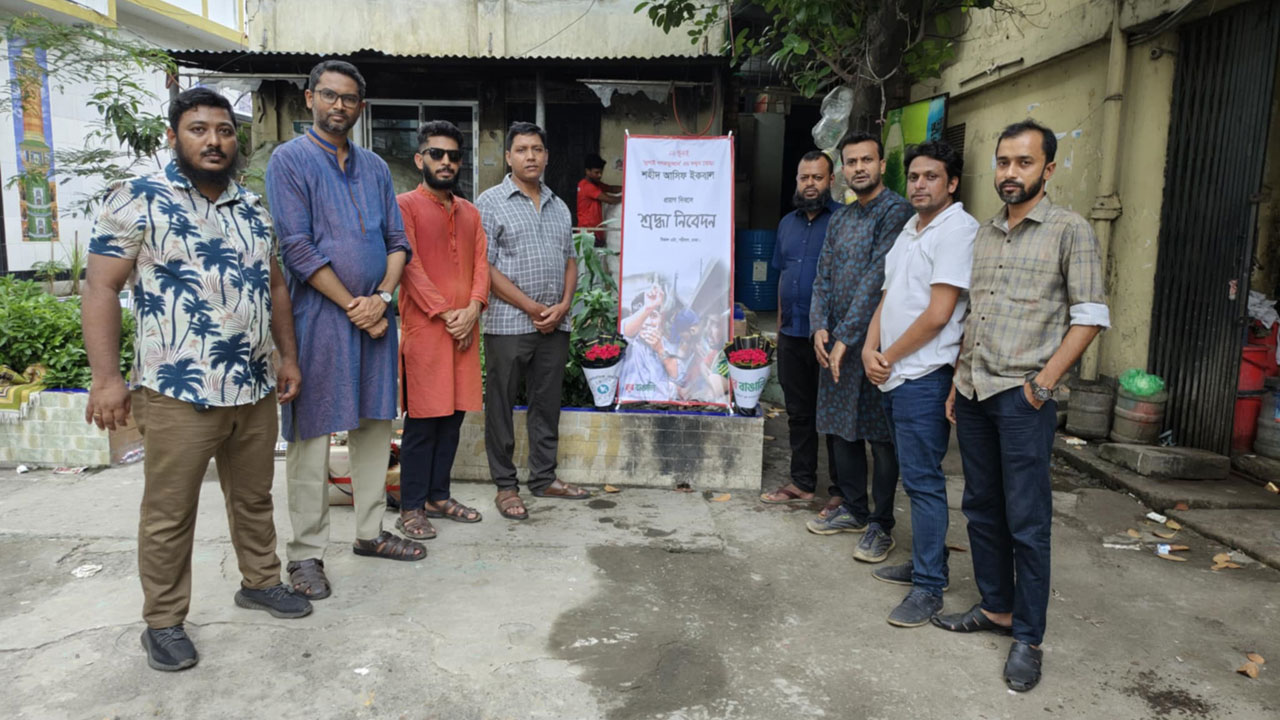শনিবার (২৬ জুলাই) রাজধানীর পরিবাগে সংগঠনের কেন্দ্রীয় কার্যালয় প্রাঙ্গণে আসিফ ইকবালের অস্থায়ী প্রতিকৃতিতে ফুল দিয়ে শ্রদ্ধা জানান যুব বাঙালির নেতারা।