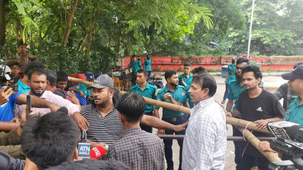 ধানমন্ডি ৩২ নম্বর সড়কের দুই পাশেই পুলিশ ব্যারিকেড দিয়ে আটকে রেখেছে। শুধু গণমাধ্যমকর্মীদের ভেতরে যাওয়ার সুযোগ দেওয়া হচ্ছে। দুই পাশেই ছাত্রদলসহ বিভিন্ন দলের নেতাকর্মীদেরও দেখা গেছে।