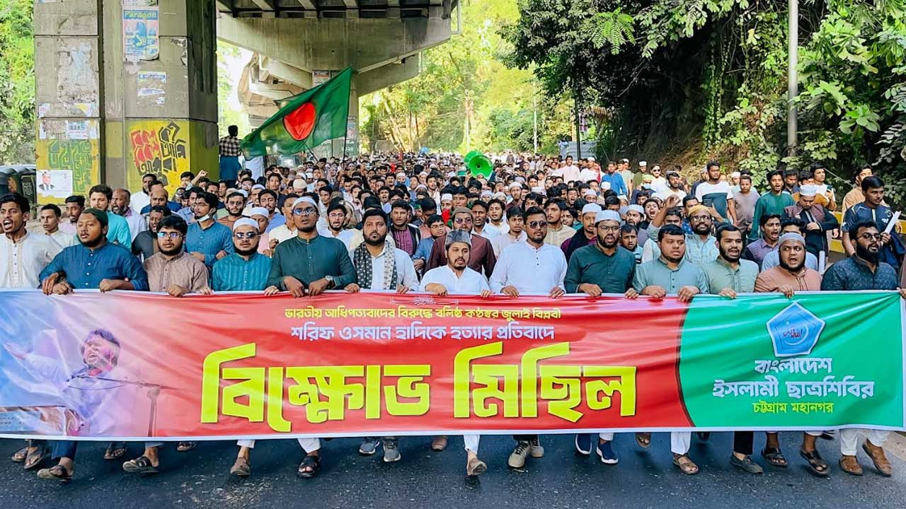 ওসমান হাদিকে হত্যার প্রতিবাদে চট্টগ্রামে শিবিরের বিক্ষোভ
