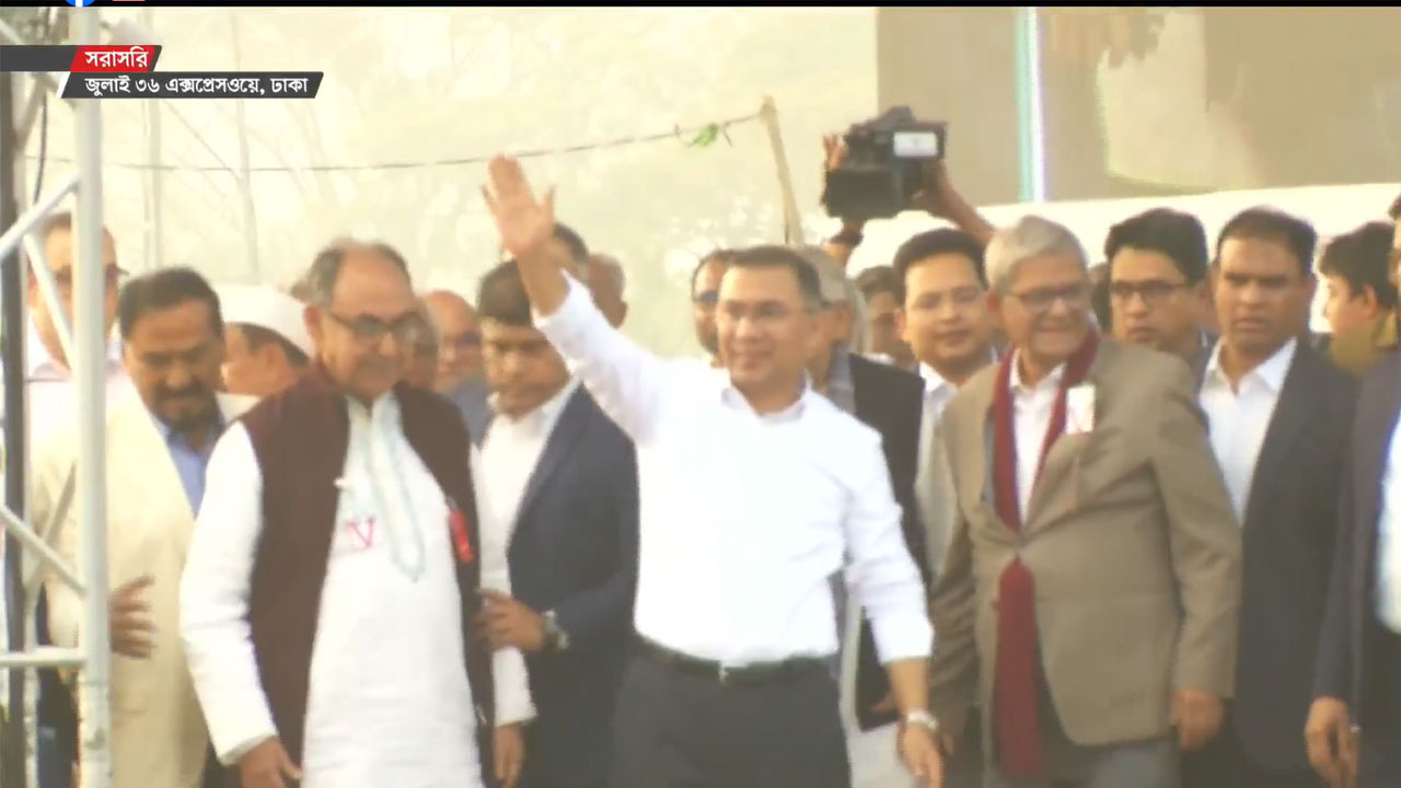 বৃহস্পতিবার (২৫ ডিসেম্বর) বিকেল ৩টা ৫০ মিনিটে রাজধানীর ৩০০ ফিট সড়কের গণসংবর্ধনা মঞ্চে পৌঁছান তারেক রহমান। গণসংবর্ধনা অনুষ্ঠানে নেতাকর্মীদের পক্ষ থেকে তারেক রহমানকে শুভেচ্ছা জানান দলের মহাসচিব মির্জা ফখরুল ইসলাম আলমগীর।