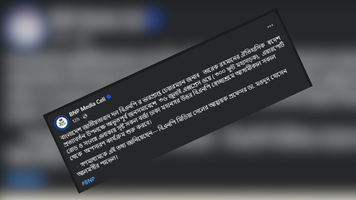 গতকাল (বৃহস্পতিবার) রাত সাড়ে ১০টায় বিএনপির মিডিয়া সেলের ভেরিফায়েড ফেসবুক পেজে দেওয়া এক পোস্টে এই কর্মসূচির কথা জানানো হয়েছে।