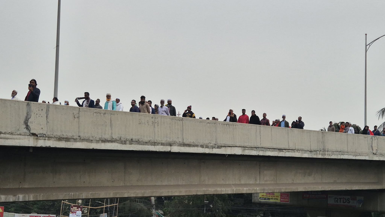 এলিভেটেড এক্সপ্রেসওয়ে দিয়ে হেঁটে আসছেন মানুষ